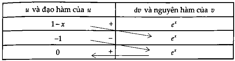 Thể tích: $V = \pi \int_0^1 {(1 – x){e^x}dx} .$